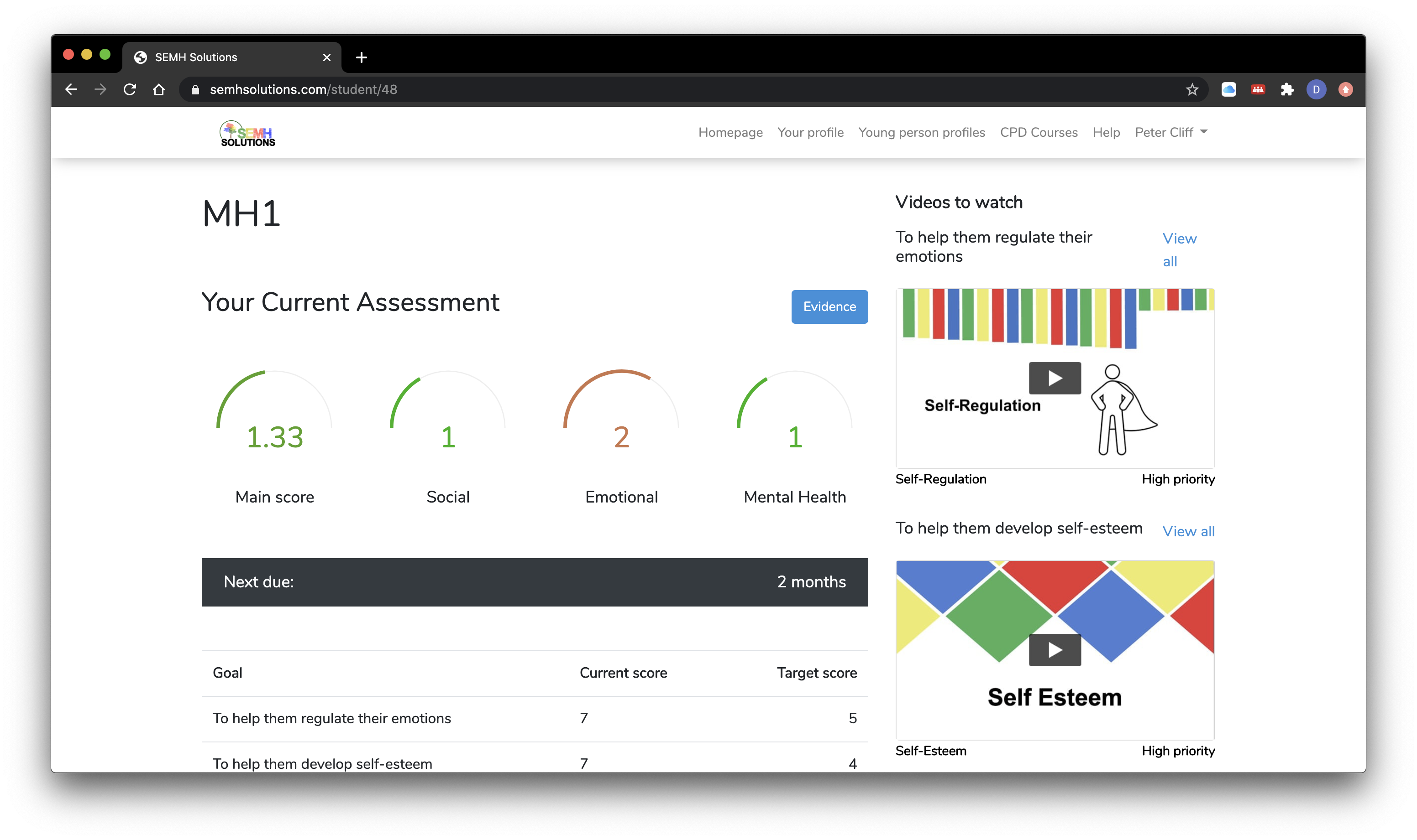 Profiles are made and can be reviewed to monitor the progress (2 month minimum gap between reviews). You can then set new goals which will give you new video strategies to watch.