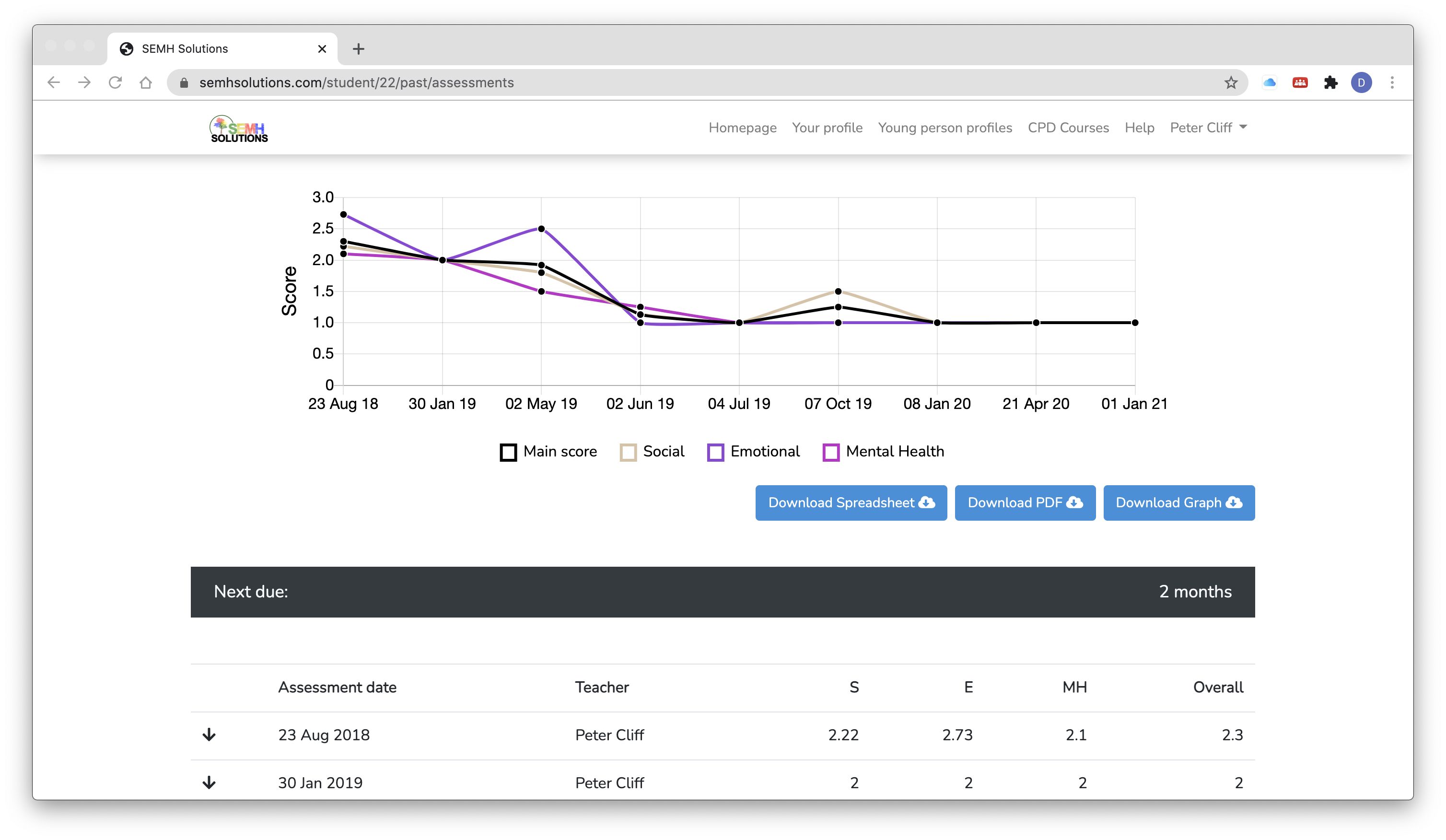 The scores from the assessment track improvements and is a good visual way to see how well they are doing.